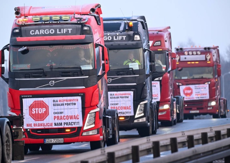 Protest przewoźników drogowych obsługujących trójmiejskie porty morskie / PAP/Andrzej Jackowski