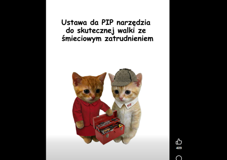 - Ministerstwo Rodziny, Pracy i Polityki Społecznej opublikowało dziś w swoich mediach społecznościowych filmik, który ma przedstawić główne założenia projektu reformy Państwowej Inspekcji Pracy. Są tłumaczone na przykładzie kotków.