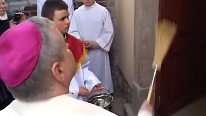Pod Teatrem Powszechnym w Warszawie, podczas wspomnianej wyżej manifestacji, obecny był też stary zakonnik, który obficie kropił bluźnierców i kontrmanifestantów wodą święconą.