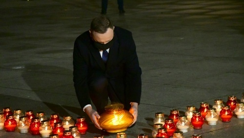 [Fotorelacja Tomasza Gutrego] Prezydent stawia znicz przy Krzyżu Papieskim w rocznicę 13 XII
