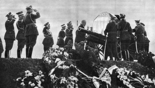 Marszałek spoczywa w podziemiach królewskiej katedry od dnia uroczystego pogrzebu równo 83 lata temu, czyli 18 maja 1935 roku, początkowo w krypcie Świętego Leonarda, a od czerwca 1937 roku - na polecenie ówczesnego metropolity krakowskiego ks. Arcybiskupa księcia Adama Stefana Sapiehy - pod Wieżą Srebrnych Dzwonów.