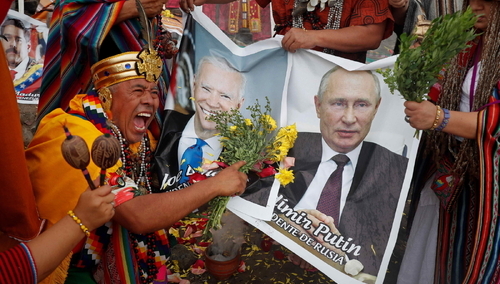 Peruwiański szaman przepowiada rok 2022 w ramach ceremonii z użyciem zdjęć Bidena i Putina