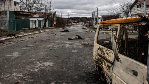 Porozrzucane dziecinne zabawki na pustym podwórku częściowo zniszczonego domostwa. Pies, który obwąchuje każdego człowieka, każdy samochód, każdy metr trotuaru, rozpaczliwie szukając pana, którego już dawno nie ma, bo albo nie żyje, albo zdążył uciec. Potem Bucza .Spalone czołgi. Jeden, drugi, trzeci. Nagle spotykam dziennikarzy z Poland World, razem jedziemy na teren Cerkwi św. Andrzeja, gdzie trwa ekshumacja 360 ciał, jak mówi ukraińska Ombudsman, lub 500, w tym 50 dzieci, jak mówią miejscowi...