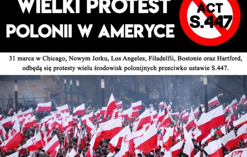 Wobec lekceważenia faktu istnienia prawa 115-171 (Act S.447) przez polskie władze i zamilczania jego znaczenia, przekonując opinię publiczną, że nie będzie ono miało żadnych praktycznych konsekwencji dla Polski i Polaków. Polonia amerykańska przeprowadziła wczoraj akcje protestacyjne w następujących miejscach: Chicago -1500 uczestników, Nowy York 2 manifestacje ok. 600 uczestników, Hartford 300 uczestników, Los Angeles 100 uczestników, Boston 100 uczestników, Denver 40 uczestników, San Diego 30 uczestników.