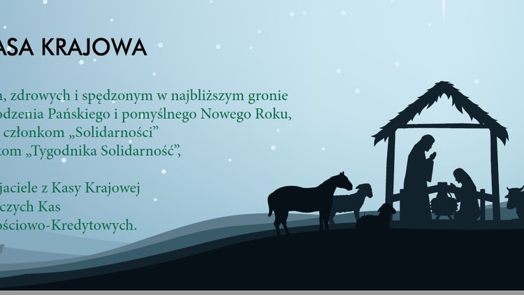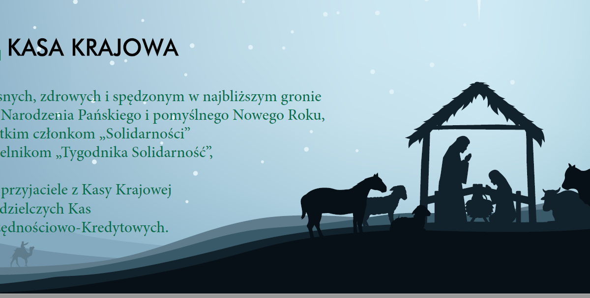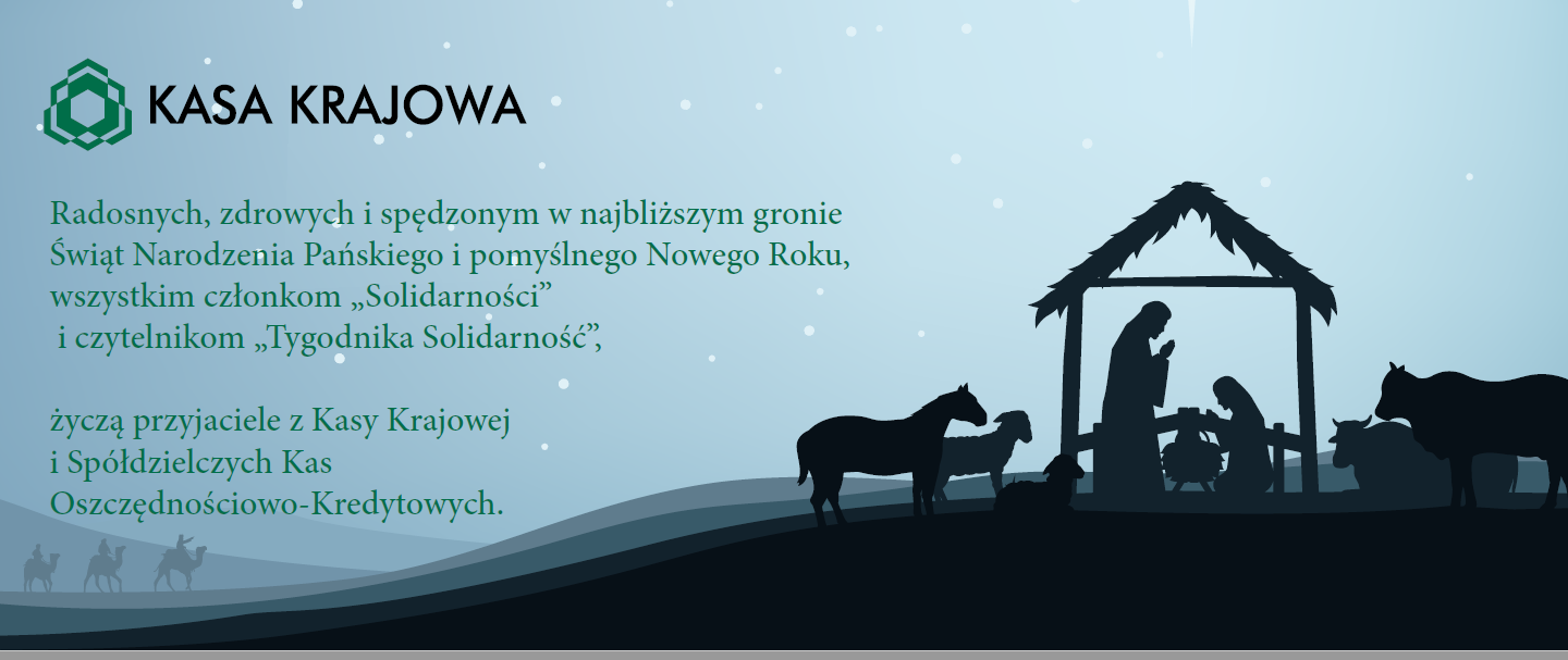 Z okazji zbliżających się Świąt Bożego Narodzenia życzymy wszystkim członkom Spółdzielczych Kas Oszczędnościowo-Kredytowych oraz NSZZ Solidarność, a także czytelnikom "Tygodnika Solidarność" i portalu Tysol spokoju ducha, zdrowia, czasu na oderwanie się od codziennych medialnych doniesień i atmosfery epidemii. Niech ten czas będzie odpoczynkiem z ciepłymi chwilami w gronie najbliższych.