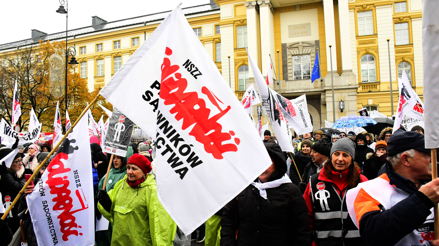 Z całej Polski do Warszawy przybyli pracownicy sądownictwa i prokuratur. Pod Kancelarią Prezesa Rady Ministrów protestowali domagając się podwyżki wynagrodzeń. W całym kraju od biurek odeszło w ramach protestu tysiące pracowników tych instytucji.