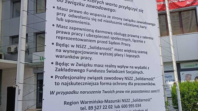 Inicjatywa warmińsko-mazurskiej "S" podnosi świadomość społeczną z zakresu działalności związków zawodowych i zachęca do wstępowania w szeregi największego związku zawodowego w Polsce, jakim jest NSZZ "Solidarność".