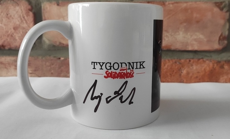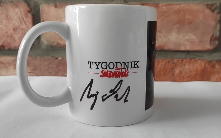 [Licytacja charytatywna] Kubek "Tygodnika Solidarność" z podpisem prezydenta Andrzeja Dudy