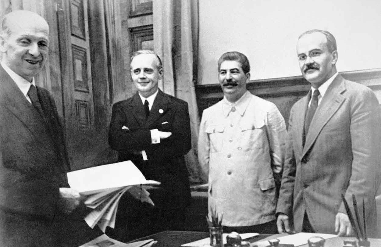 23 sierpnia 1939 r. przedstawiciele dwóch mocarstw - szef MSZ III Rzeszy Joachim von Ribbentrop oraz ludowy komisarz spraw zagranicznych ZSSR Wiaczesław Mołotow podpisali w Moskwie niemiecko-sowiecki pakt o nieagresji wraz z tajnym protokołem dodatkowym. Jego konsekwencją był IV rozbiór Polski. Dokument podpisano w obecności Józefa Stalina.