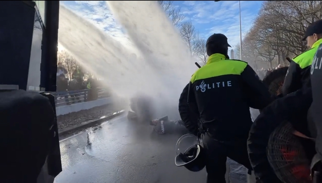 W trakcie blokady policja wzywała aktywistów do zejścia z drogi. Ze względu na brak reakcji użyto armatek wodnych. Rzecznik burmistrza Robin Middel w rozmowie z dziennikiem "De Telegraaf" poinformował, że aktywiści użyli dzieci do swoich protestów. "Umieszczają je naprzeciwko armatek wodnych" - powiedział Middel.