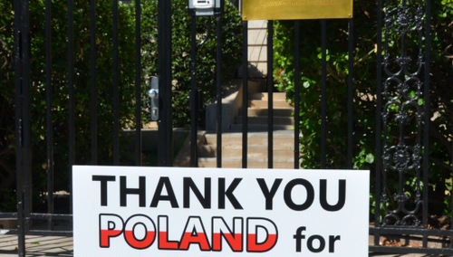 Nietypowy baner zawisł na polskiej ambasadzie w USA. Za co Amerykanie dziękują Polakom?