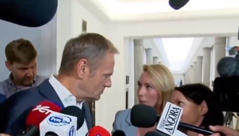 [wideo] Tusk kpiąco reaguje na happening Jachiry. „Mówi pani tak, jakby nie wiem, co zrobiła no”
