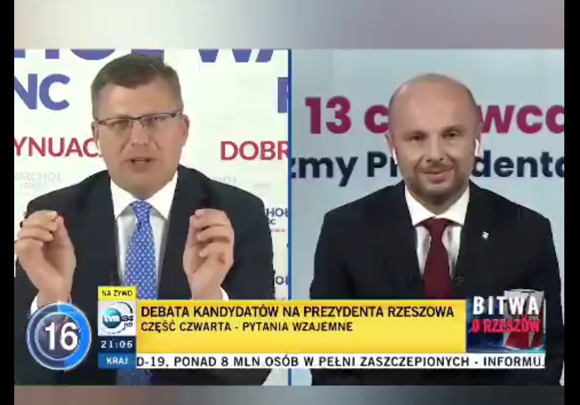 Kandydat związany z Solidarną Polską, Marcin Warchoł, kilkakrotnie próbował dowiedzieć się od pierwszego w przedwyborczych sondażach Fijołka, "co on właściwie zrobił dla miasta przez 2 dekady >>zasiadania<< w samorządzie".