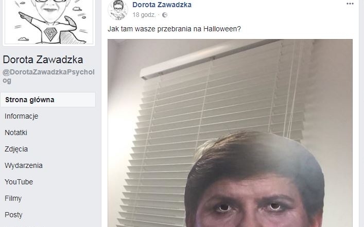 - pyta Zawadzka na Facebooku, dołączając do tego zdjęcie maski z twarzą premier Beaty Szydło. Post w podobnym stylu zamieściła również na swym Twitterze. Większość komentujących było zgodnych, że granice dobrego smaku zostały przekroczone i ostro skrytykowało "Supernianię".