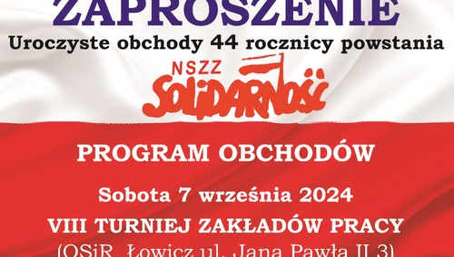 Zaproszenie na 44. urodziny Solidarności do Łowicza