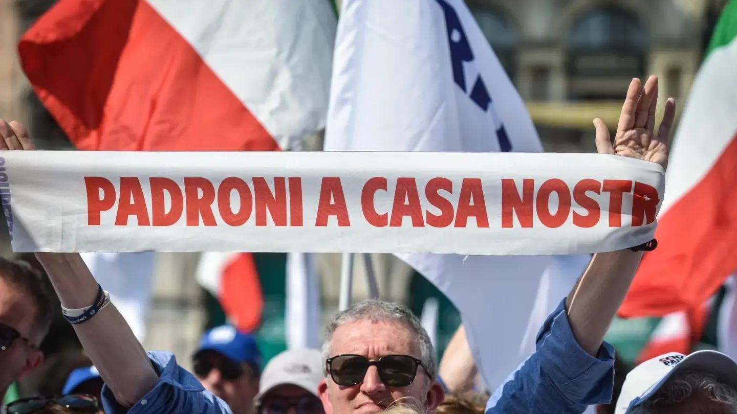 Zwolennicy grupy Patrioci dla Europy, trzeciego co do wielkości bloku w Parlamencie Europejskim, zgromadzili się przed katedrą Duomo w Mediolanie, oddzieleni znaczną obecnością policji od podobnie tysiąckrotnego wiecu grup „antyfaszystowskich”.