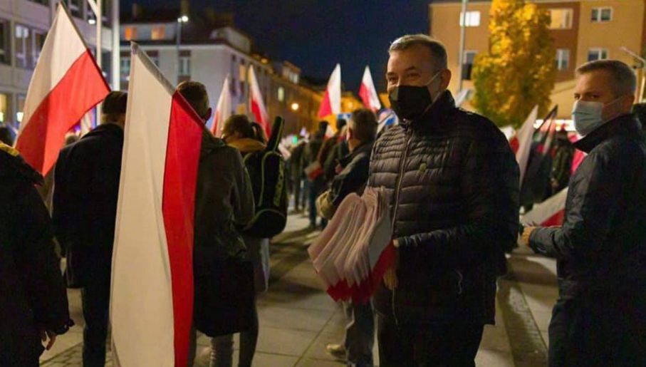 Okazuje się, że kilka dni temu - w środę 4 listopada - polityk brał aktywny udział w demonstracji na ulicach Koszalina. Razem z grupą innych protestujących szedł w Strajku Kobiet w tzw. marszu tysiąca flag.