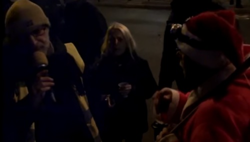 - Jesteśmy tutaj na formalnym, spontanicznym zgromadzeniu [to spontanicznym czy formalnym? - przyp. red.] (...) tu jest określony protest, który odbywa się w określonej formie i nie życzymy sobie tutaj Mikołaja. Po prostu - takimi słowy przegnał "św. Mikłaja", który po to żeby nie drażnić postępowych uczuć religijnych, przyszedł tym razem nawet nie jako biskup z Miry, Paweł Kasprzak szef Obywateli RP, jeden z "wodzów" Ciamajdanu, który wcześniej groził już "aresztowaniem" krzyża smoleńskiego.