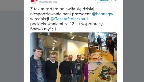 O mediach mówi się, że są tak zwaną „czwarta władzą”. W systemie demokratycznym ich rola jest fundamentalna, gdyż mają duży wpływ na kształtowanie opinii publicznej. Ponadto rolą dziennikarzy jest "patrzenie na ręce" politykom. Tym bardziej dziwi wpis, który opublikowała na Twitterze redakcja warszawskiego oddziału "Gazety Wyborczej". Redaktorzy chwalą się w nim, że Hanna Gronkiewicz-Waltz odwiedziła ich redakcję, dziękując za 12 lat... "współpracy".