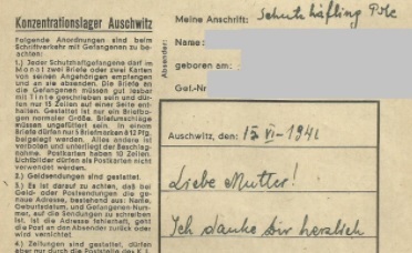 nnChciałem przekazać do Muzeum w Auschwitz listy starszego brata Babci, więźnia z pierwszego transportu Polaków do Auschwitz (14 czerwca 1940, 3-cyfrowy numer, później w obozowym Ruchu Oporu). Odpowiedziano mi: "skoro nie był Żydem, to nas to nie interesuje, bo mamy za dużo listów"
