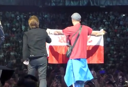 News z #Amsterdam - #Bono mówi ze sceny, że "naszym polskim braciom i siostrom odbierana jest demokracja". Fot. Beata Grzybek-Zielińska #U2 pic.twitter.com/P5VuU6vFvd