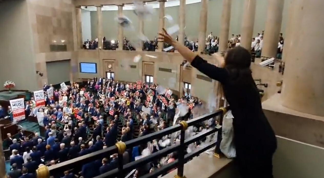 "Za rozrzucenie «pociętych kartek papieru imitujących banknoty» Prezydium Sejmu ukarało mnie obniżeniem uposażenia o połowę przez 3 m-ce. Natomiast Adam G., który odpowiada za dodrukowanie 144 mld, rekordową inflację i drożyznę nie poniósł żadnej kary [pisownia oryginalna - przyp. red.]" - napisała Klaudia Jachira w mediach społecznościowych.