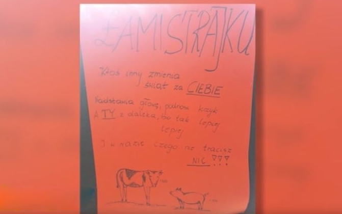 - czytamy na plakacie. Pod odezwą narysowano krowę i świnię.
