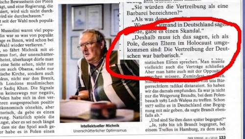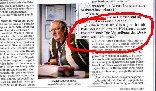 Wypowiedź Michnika ukazała się w Der Spiegel, w materiale napisanym przez Navid Kermaniego.