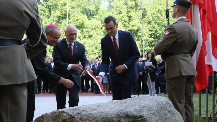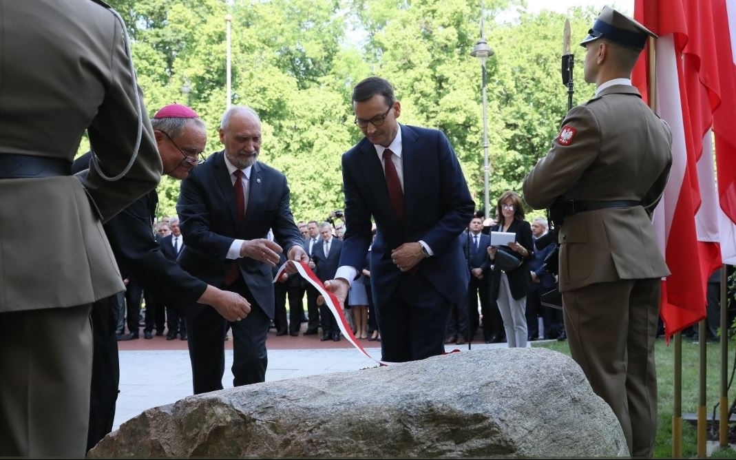 Premier @MorawieckiM w #KPRM: To zaszczyt, że możemy w tym pamiętnym dniu, 4 czerwca, który jest datą bardzo wymowną, dwoistą, odsłonić kamień węgielny pod budowę pomnika premiera Jana Olszewskiego. pic.twitter.com/Xrbo8sbP13