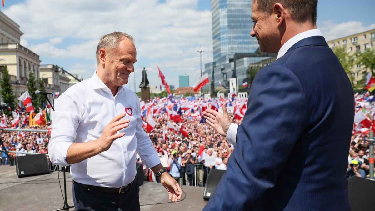 W niedzielę w stolicy odbyły się marsze zorganizowane przez sztaby kandydatów KO Rafała Trzaskowskiego i popieranego przez PiS Karola Nawrockiego. Zarówno Rafał Trzaskowski, jak i Karol Nawrocki zdecydowali się na demonstracje w tym samym czasie - o godz. 12. To pierwsza taka sytuacja od 1989 r.
