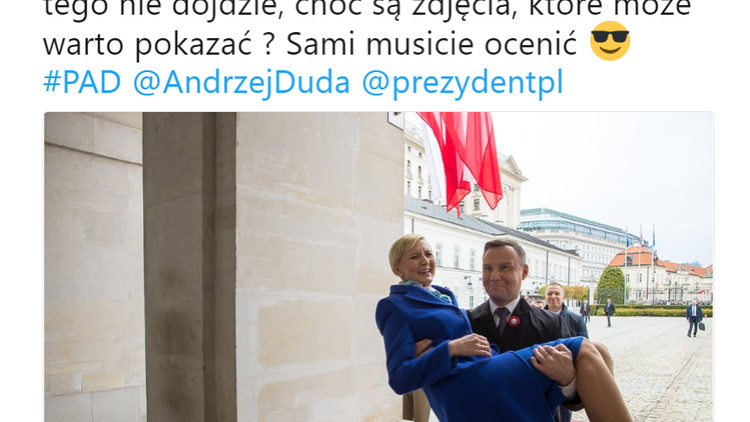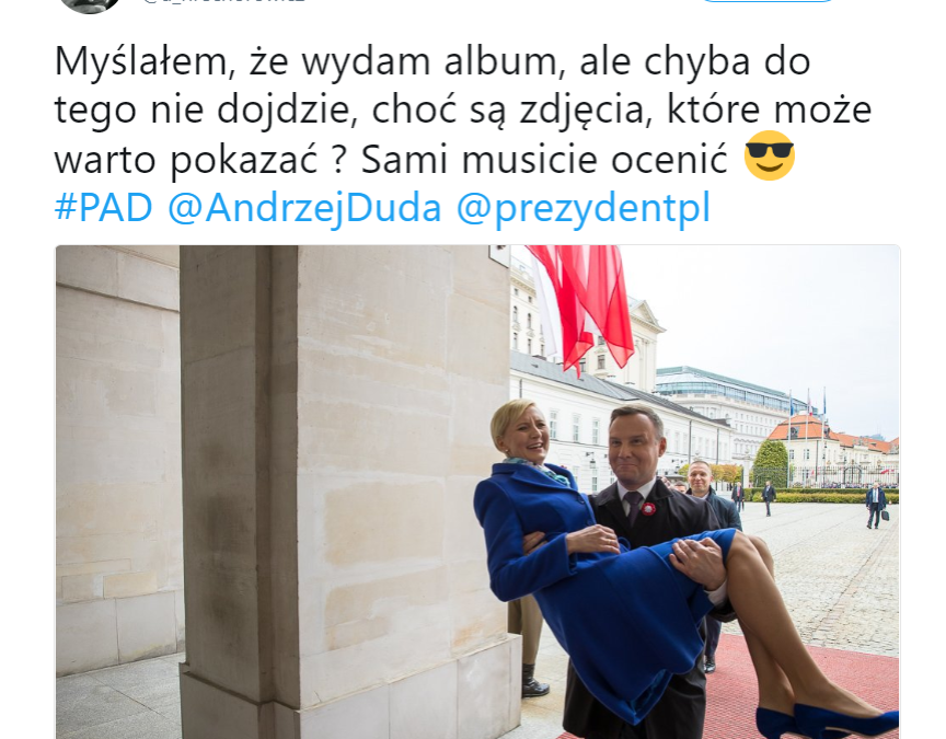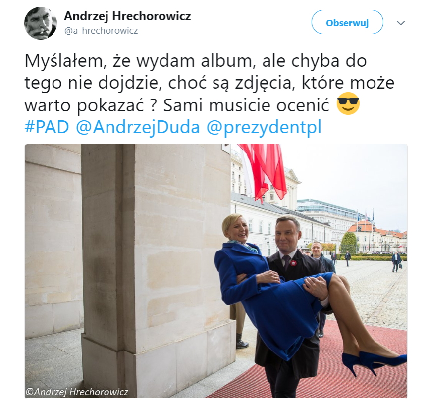 Były prezydencki fotograf, Andrzej Hrechorowicz, opublikował na Twitterze zdjęcie, na którym widać moment, gdy Andrzej Duda wnosi na rękach swoją żonę do Pałacu Prezydenckiego.
