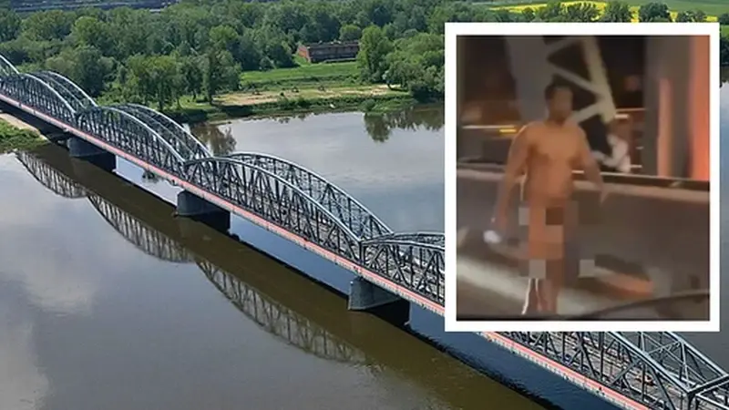 Nagi Murzyn zatrzymany na moście w Toruniu