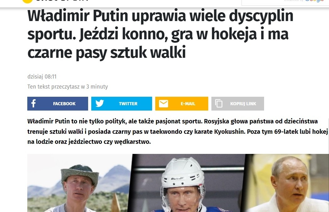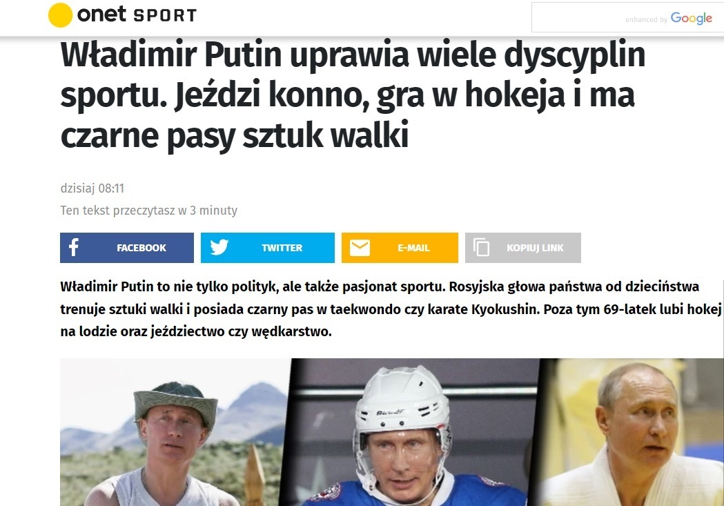 Dziś na @onetpl ocieplanie wizerunku Władimira Putina, pasjonata sportu, mistrza hokeja i wschodnich sztuk walki, kochającego ojca który dla córki zrobiłby wszystko.