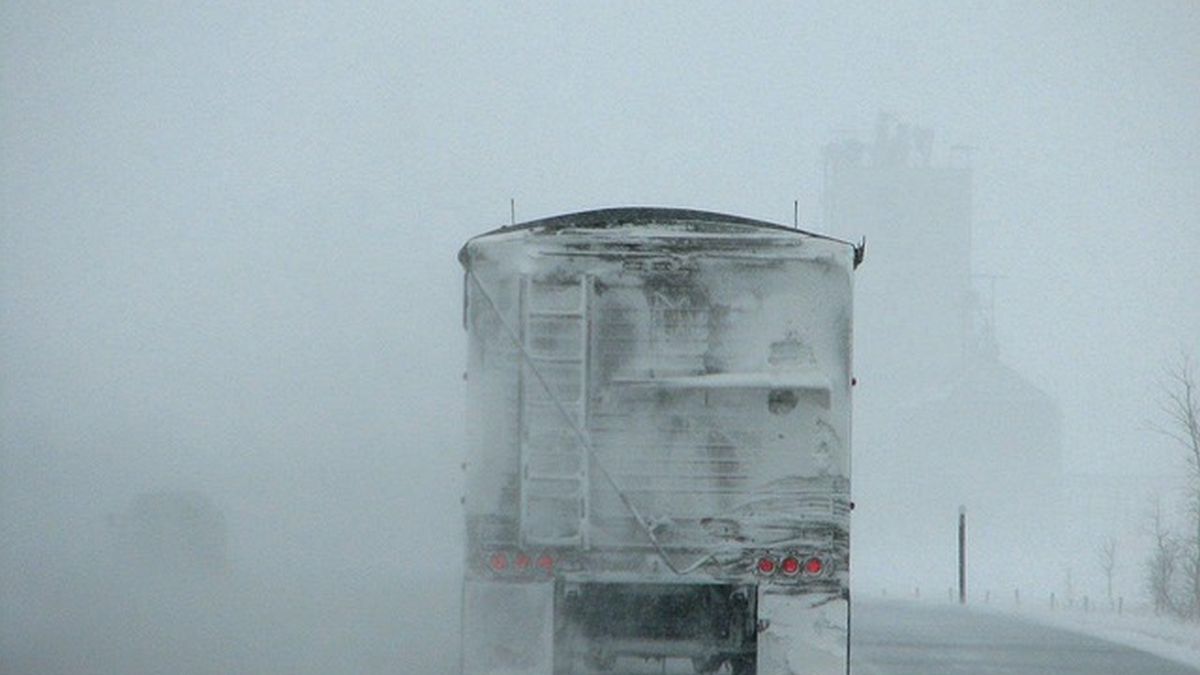 - Lód z ciężarówki roztrzaskał się tuż przed radiowozem.