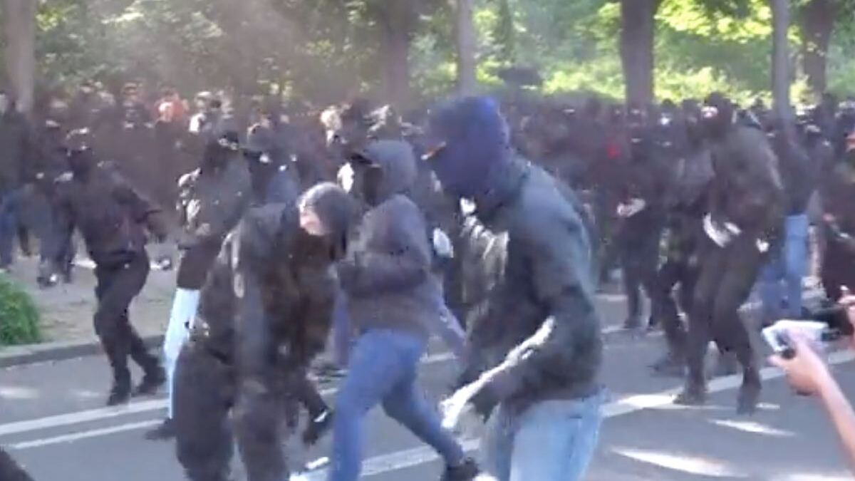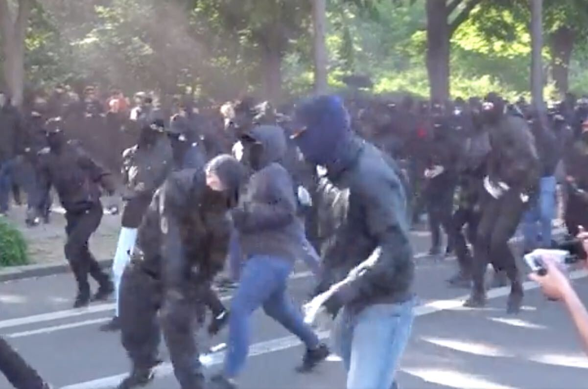 A rain of stones is being thrown towards the police who deliberately escalated the situation in Leipzig by prohibiting the antifascist demonstration. #Leipzig #TagX #LinaE pic.twitter.com/jq75j32a9h