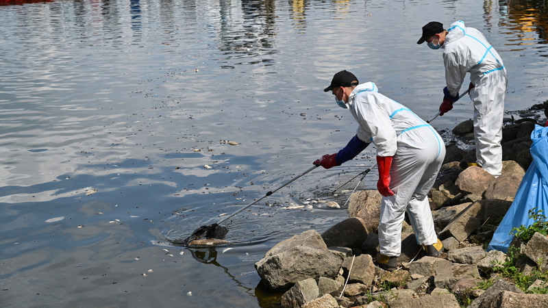 Polski rząd podejrzewa, że rzeka mogła zostać zatruta odpadami chemicznymi. "Prawdopodobnie do rzeki trafiła ogromna ilość odpadów chemicznych i to przy pełnej świadomości zagrożeń i konsekwencji" - powiedział w piątek premier Morawiecki. Polska policja zaoferowała nagrodę 1 mln złotych za pomoc w ustaleniu sprawców, a prokuratura prowadzi śledztwo.