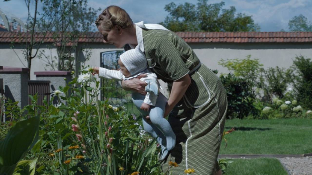 Jednak najważniejszą postacią filmu jest żona komendanta Hössa. Bo o ile Rudolf Höss wchodzi codziennie na teren obozu, wypełniając tam swoje obowiązki skrupulatnego mordercy, to Hedwig Höss nie ma nic wspólnego z mordowaniem. Zajmuje się opieką nad dziećmi, wydawaniem poleceń służącym-Polkom, a przede wszystkim pielęgnacją ukochanego ogrodu i szklarni. Ludzie są gazowani, rozstrzeliwani, torturowani, a ich zwłoki palone tuż obok, a ona o tym wie i udaje, że to nie istnieje. W niczym nie uczestniczy, odnosi tylko "powszednie" korzyści - a to futro po zamordowanej Żydówce, a to popiół z krematorium pod krzaki róż. Jednak fakt, że żyje obok fabryki śmierci, nie ma żadnego wpływu na jej życie, na jej decyzje, na jej nastrój, nie narusza jej spokoju. I znów: na ekranie nikt tego nie werbalizuje, ale film zadaje widzowi kolejne pytanie: "Jak łatwo jest zamknąć się we własnym świecie, odizolować od rzeczywistości na zewnątrz i zachować tak doskonałe pozory normalności, że ich sztuczność jest nie do dostrzeżenia?". Odpowiedź jest znów zatrważająca: "Bardzo łatwo. To jest zjawisko powszechne i my sami postępujemy tak w naszym życiu".