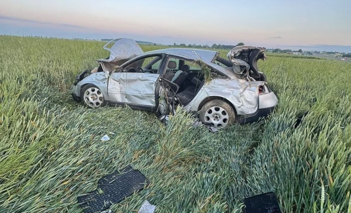 23-latek z Piasków dachował audi po stracie panowania nad pojazdem; został wyrzucony z auta i odnaleziony śpiący w zbożu 50 metrów dalej.