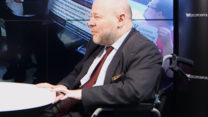 Senator dotknięty jest porażeniem mózgowym, porusza się na wózku.