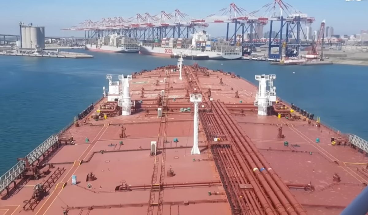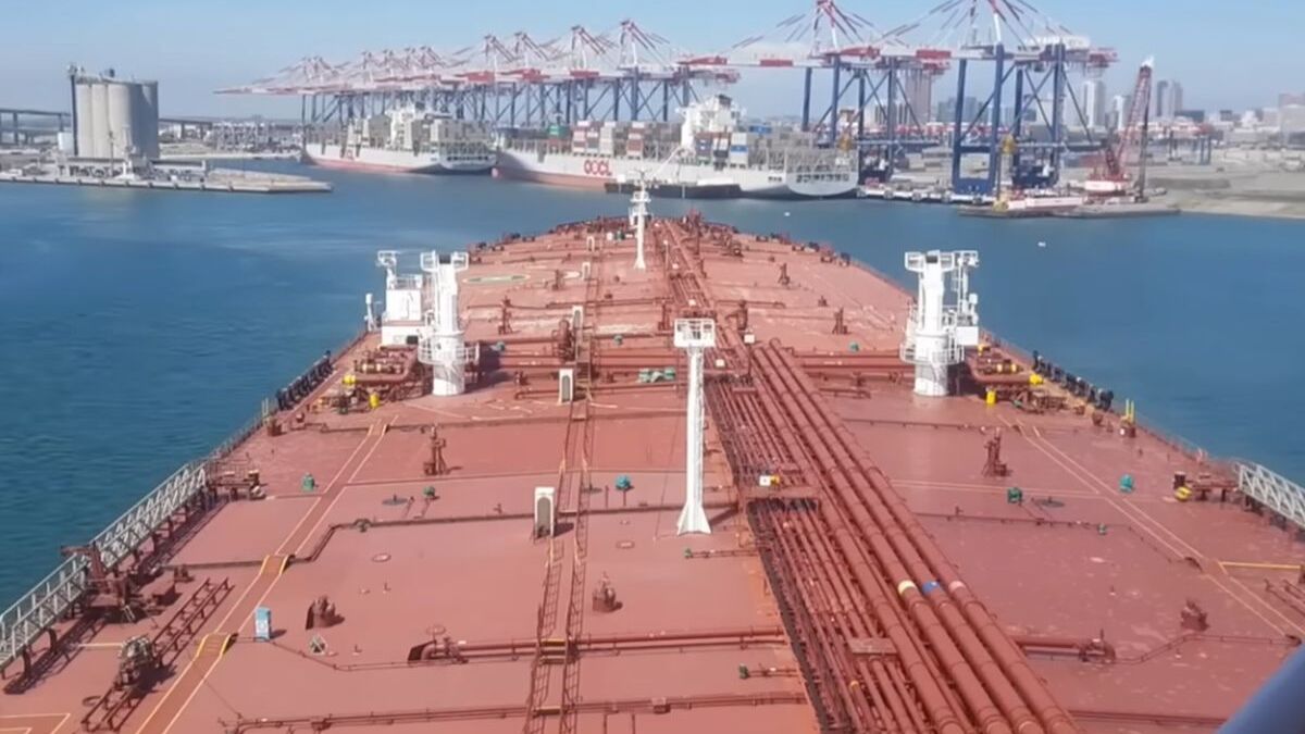 Supertankowiec zmienia kierunek