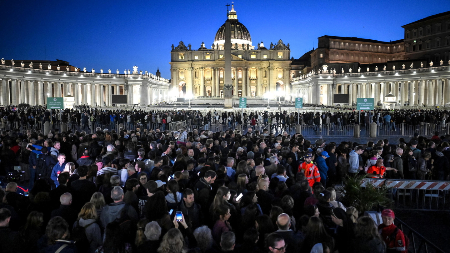 Ludzie oddają hołd zmarłemu papieżowi Franciszkowi, którego ciało leży w Bazylice Świętego Piotra w Watykanie
