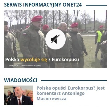 "Polska wycofuje się z Eurokorpusu" - czytamy w umieszczonej na wysokiej pozycji na stronie głównej Onetu informacji popartej materiałem filmowym. Nieco niżej, bez dużego obrazka, czytamy: "Polska opuści Eurokorpus? Jest komentarz Antoniego Macierewicza". Czego możemy dowiedzieć się pod tym linkiem?