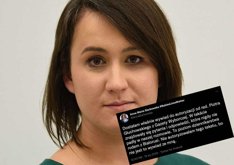 "Dostałam właśnie wywiad do autoryzacji od red. Piotra Głuchowskiego z Gazety Wyborczej. W tekście znajdowały się pytania i odpowiedzi, które nigdy nie padły w naszej rozmowie" - pisze dziś w mediach społecznościowych posłanka klubu Prawa i Sprawiedliwości Anna Maria Siarkowska. Jej zdaniem jest to "poziom dziennikarstwa rodem z Białorusi".