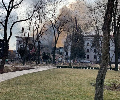 Another horrendous war crime in Mariupol. Massive Russian attack on the Drama Theater where hundreds of innocent civilians were hiding. The building is now fully ruined. Russians could not have not known this was a civilian shelter. Save Mariupol! Stop Russian war criminals! pic.twitter.com/bIQLxe7mli