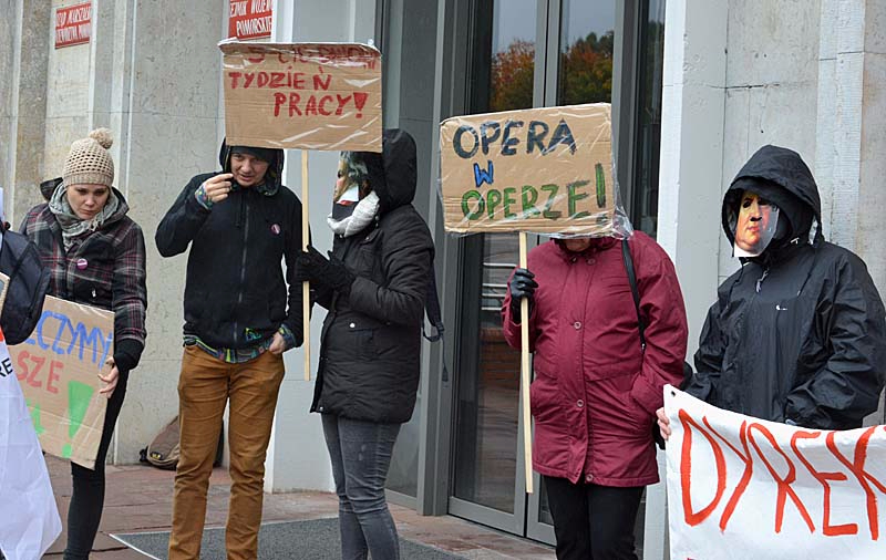 Pismo, wzywające władze województwa do "opamiętania" i przyjrzenie się problemom w operze, zostało złożone w 9 października br. w gabinecie marszałka. Tego też dnia przez godzinę przed wejściem do Urzędu Marszałkowskiego w Gdańsku, stanęło z plakatami i transparentami kilkadziesiąt osób, popierających postulaty pracowników Opery Bałtyckiej.