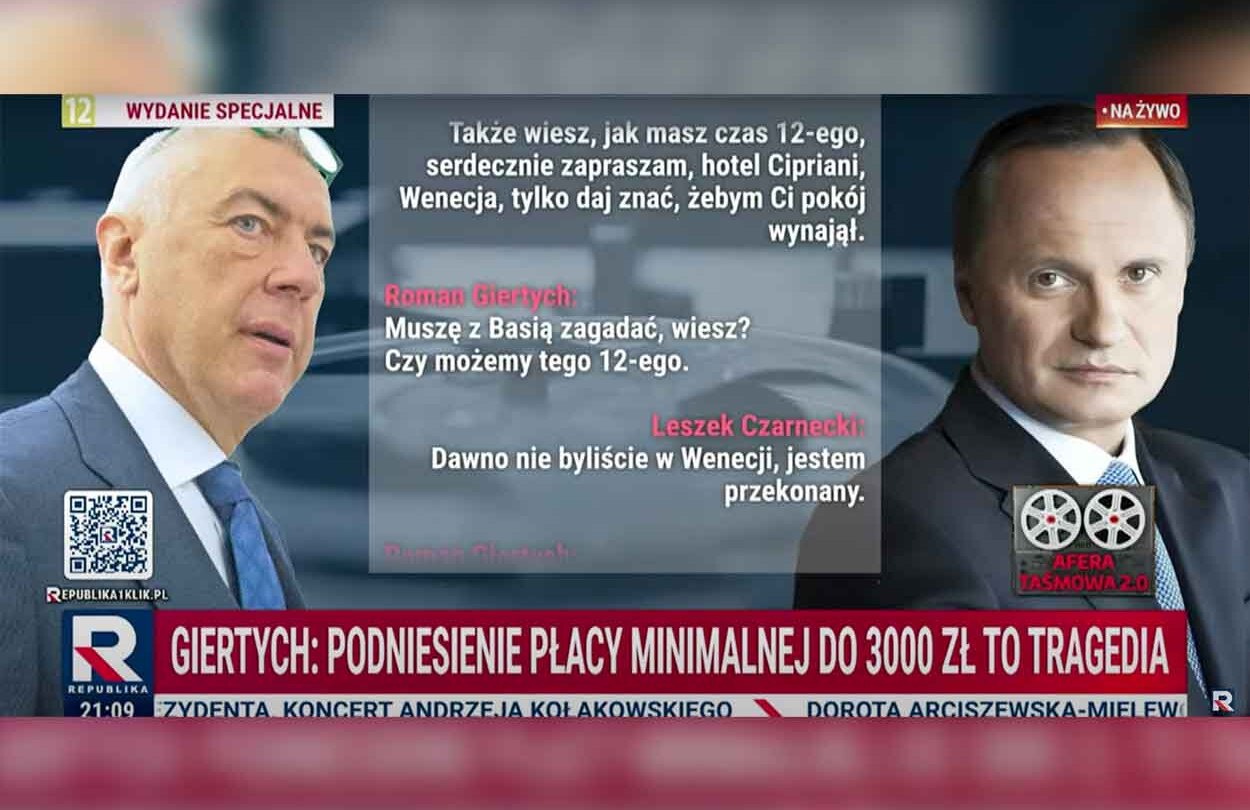 Kolejna odsłona taśm ujawnionych przez Telewizję Republika ukazuje, jak Roman Giertych umawiał się z bohaterem afery GetBack na wspólne biesiadowanie w luksusowym hotelu w Wenecji.