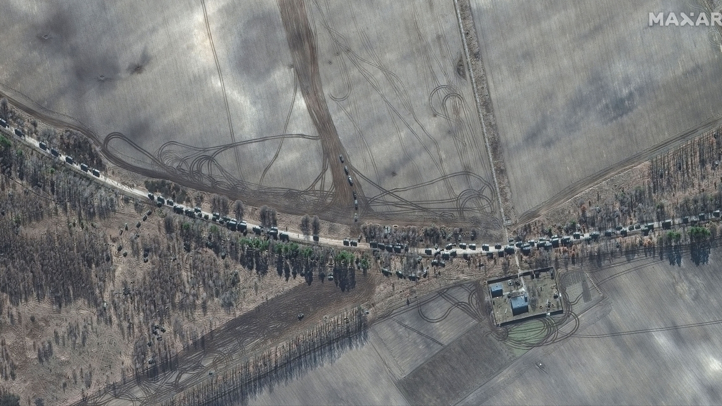 Odnosząc się do ciągnącej się na wiele kilometrów rosyjskiej kolumny pojazdów znajdującej się na północ od Kijowa, stwierdził że nadal nie poruszyła się naprzód i była celem ataków Ukrainy.