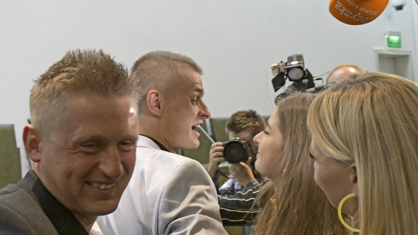 Wzruszenie Tomasza Komedy tuż po ogłoszeniudecyzji sądu.
