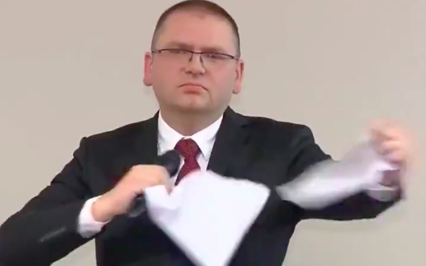 Sędzia Maciej Nawacki nie dopuścił do głosowania uchwał, a potem demonstracyjnie podarł wniosek