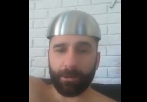 - mówi radny, przechodząc następnie do prześmiewczego parodiowania kapłańskich słów wypowiadanych w momencie udzielania Komunii Świętej, przy których uderza się w blaszaną miskę włożoną na głowę.